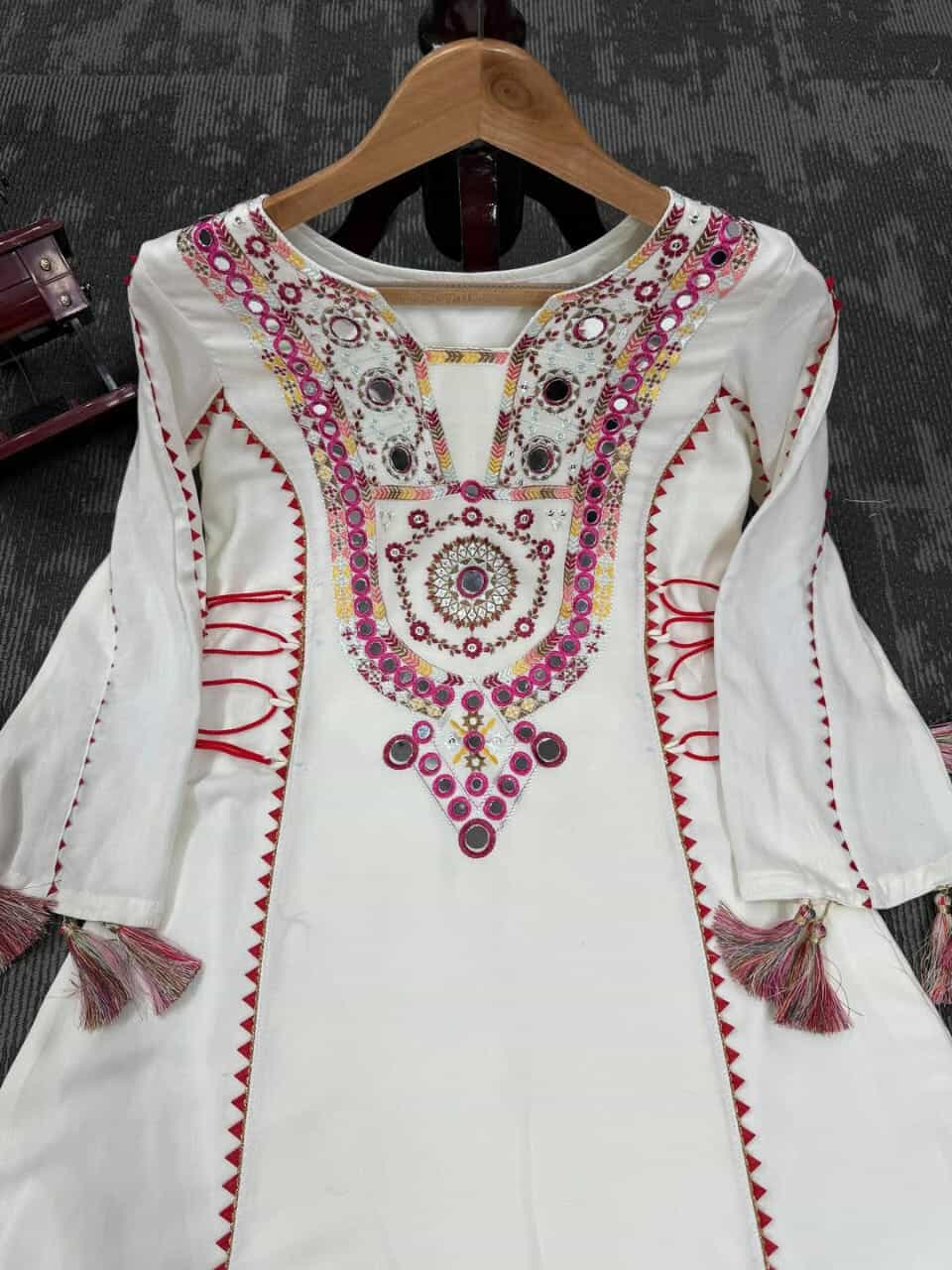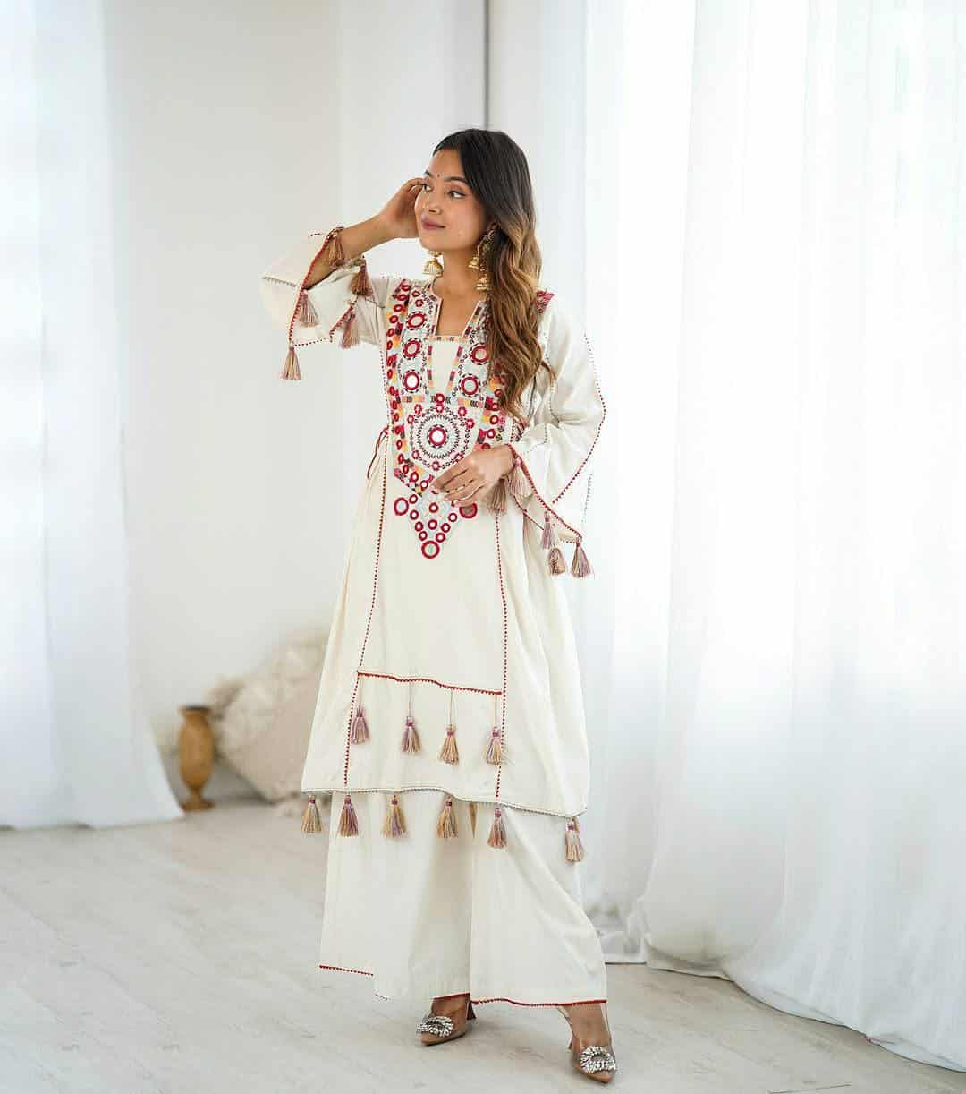 জামা:- ভিআইপি কটন কাপড়ের উপর গ্লাসওয়ার্ক এবং এমব্রয়ডারির কাজ করা থাকবে!! ছবির মত সেম টু সেম হবে!!
