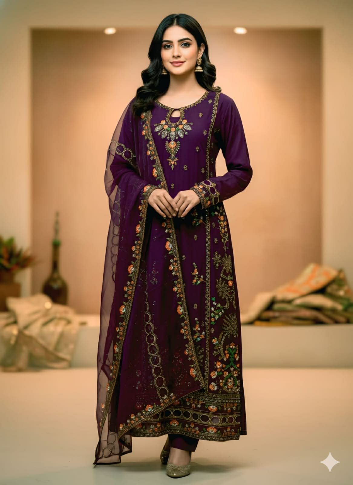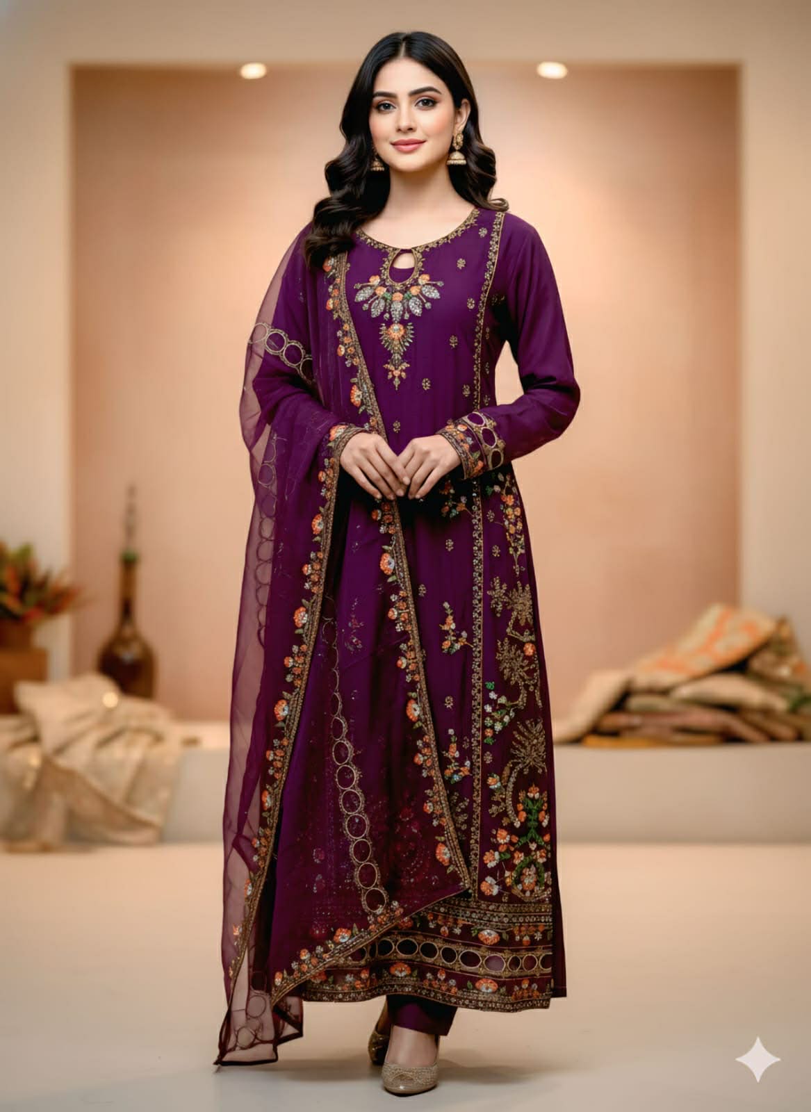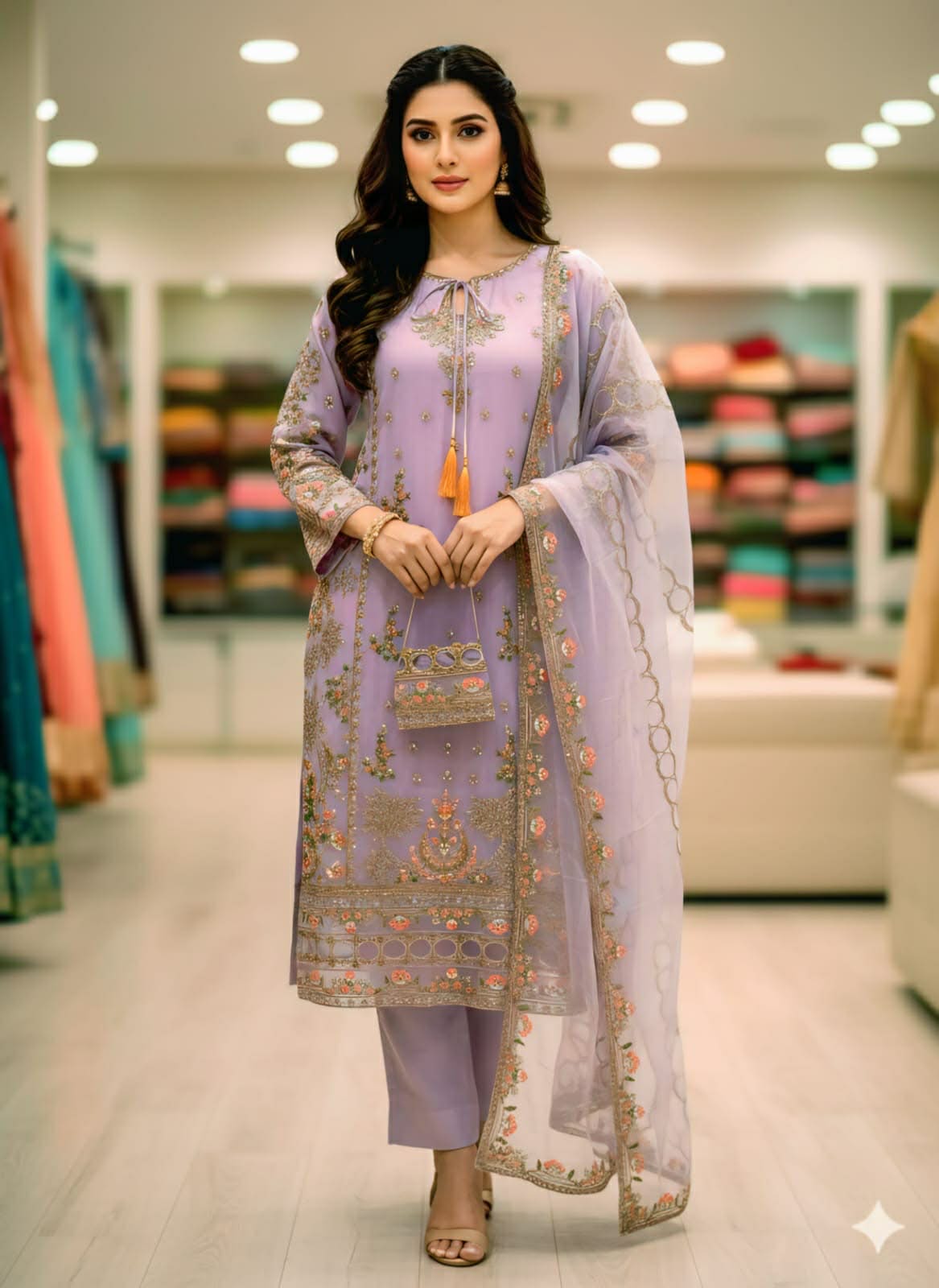 পাকিস্তানি ডিজাইন ফোর পিস সাদা বাহার টিস্যু