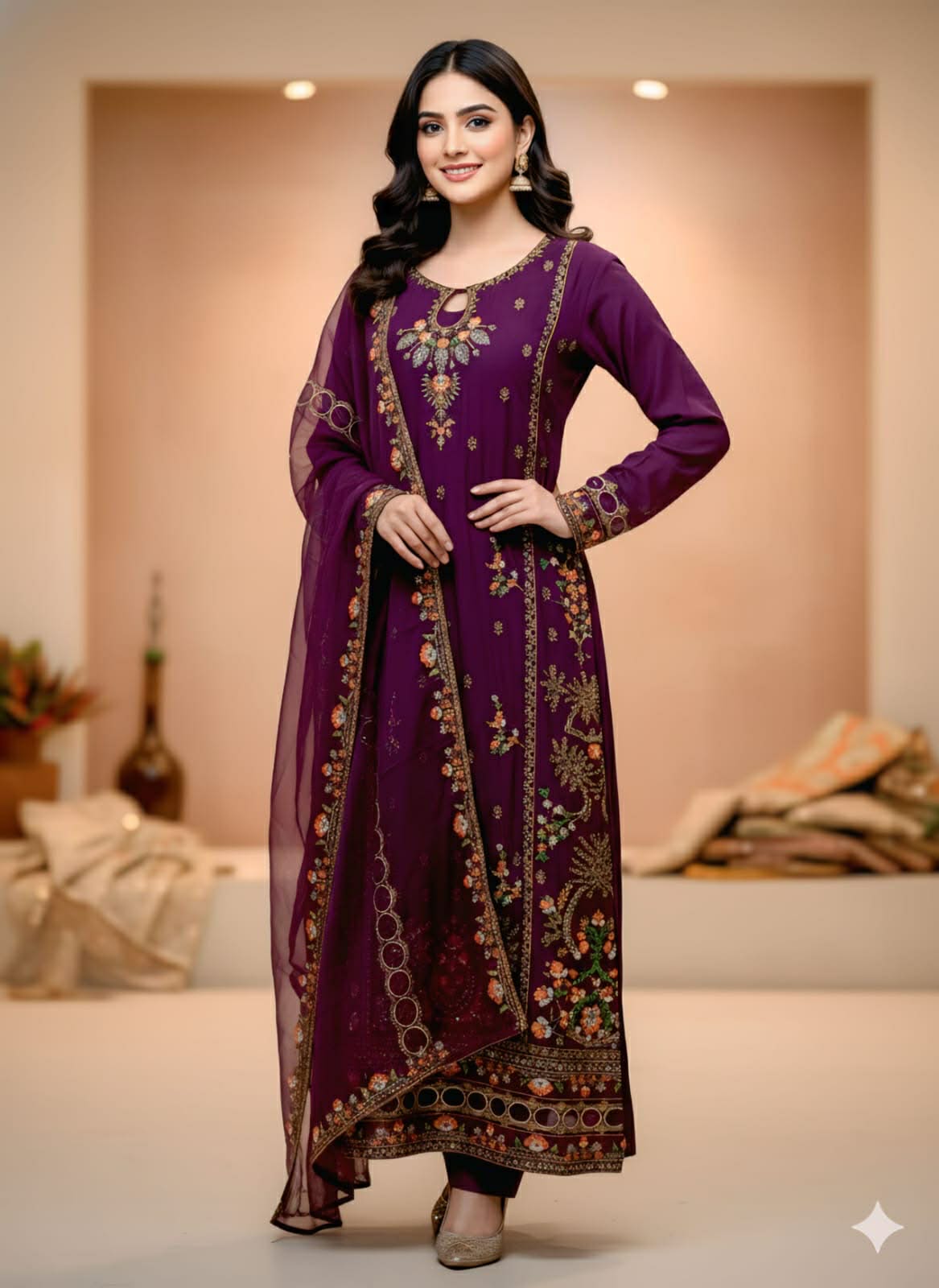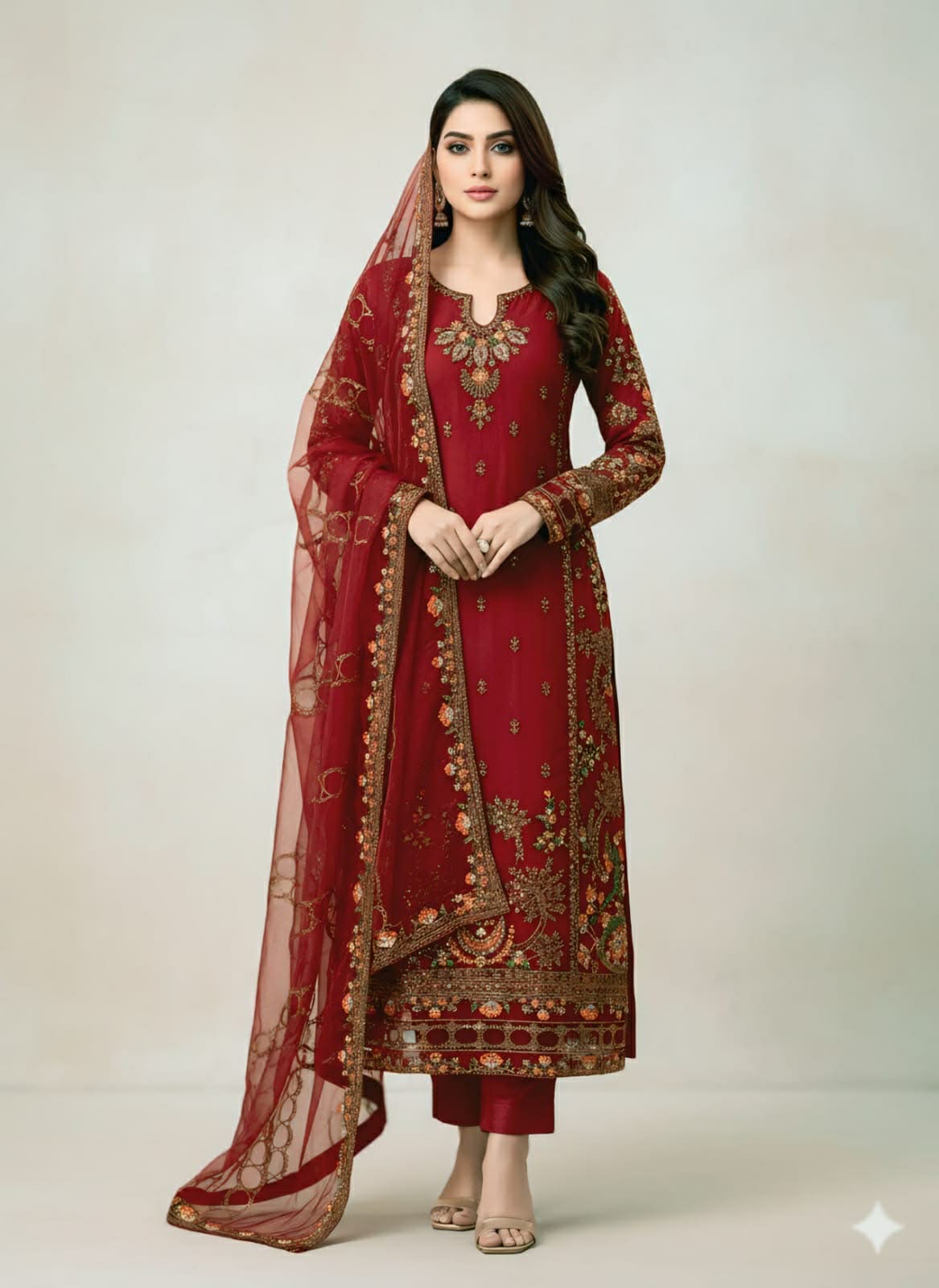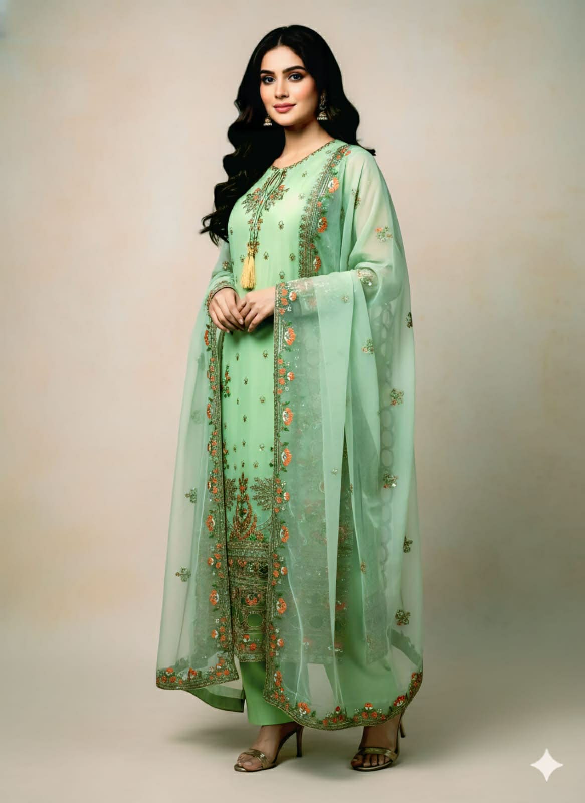 পাকিস্তানি ডিজাইন ফোর পিস সাদা বাহার টিস্যু