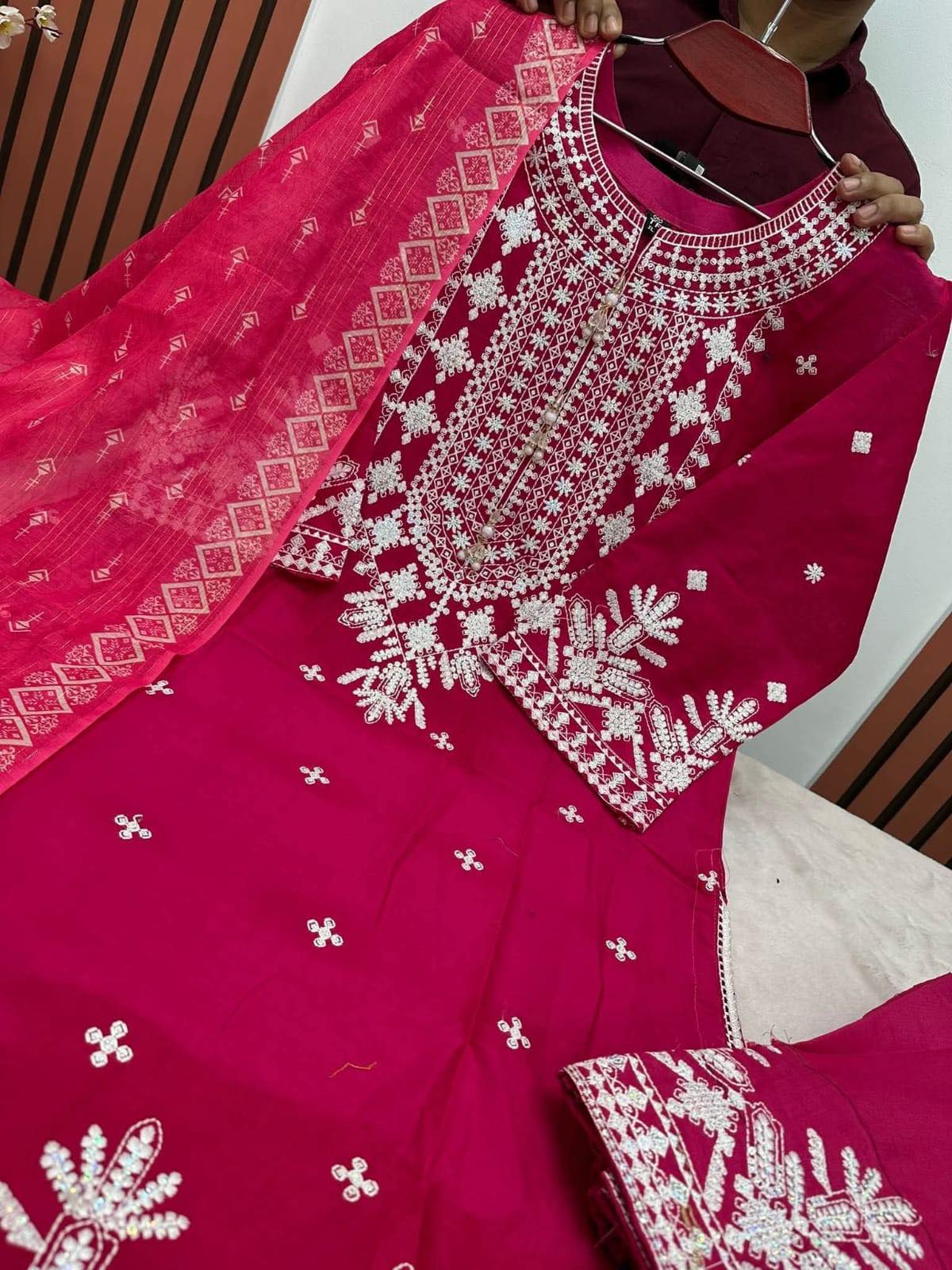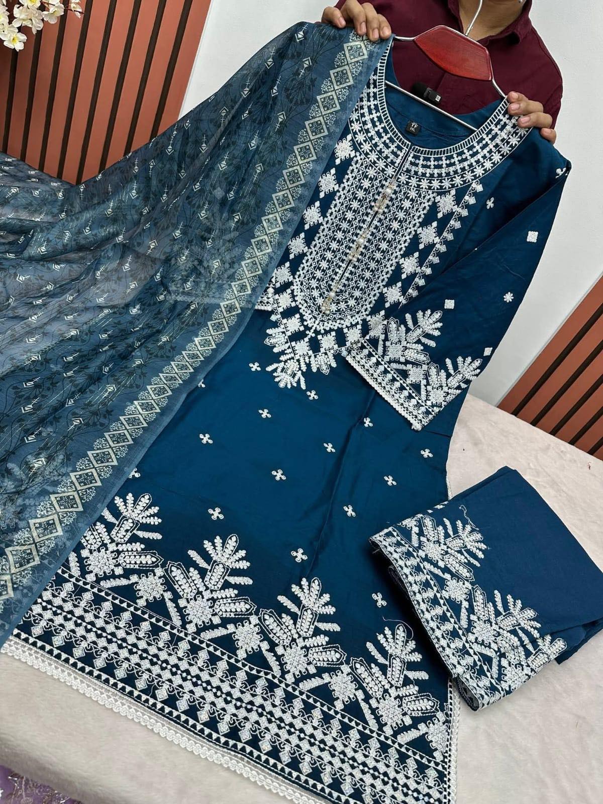 ফুল বডিতে এমব্রয়ডারি সুতার কাজ এবং ওড়না ডিজিটাল প্রিন্ট করা।